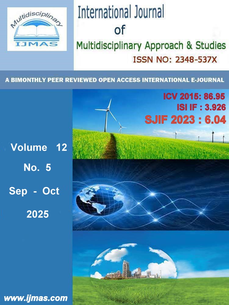 International Journal of Multidisciplinary Approach & Studies (IJMAS) is an academic Online Open Access Peer Reviewed International Journal which is approved by National Science Library (NSL), and National Institute of Science Communication And Information Resources (NISCAIR), New Delhi, India. IJMAS is indexed and approved by ISI and various other International bodies. IJMAS is open access peer reviewed online journal which allows its users to read, download, copy, distribute, print, search, or link to the full texts of the articles in this journal. This work is licensed under a Creative Commons Attribution 3.0 License. It is run in association with an NGO ?Aryavart ? which works for women and child welfare.